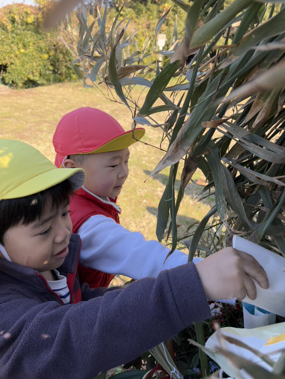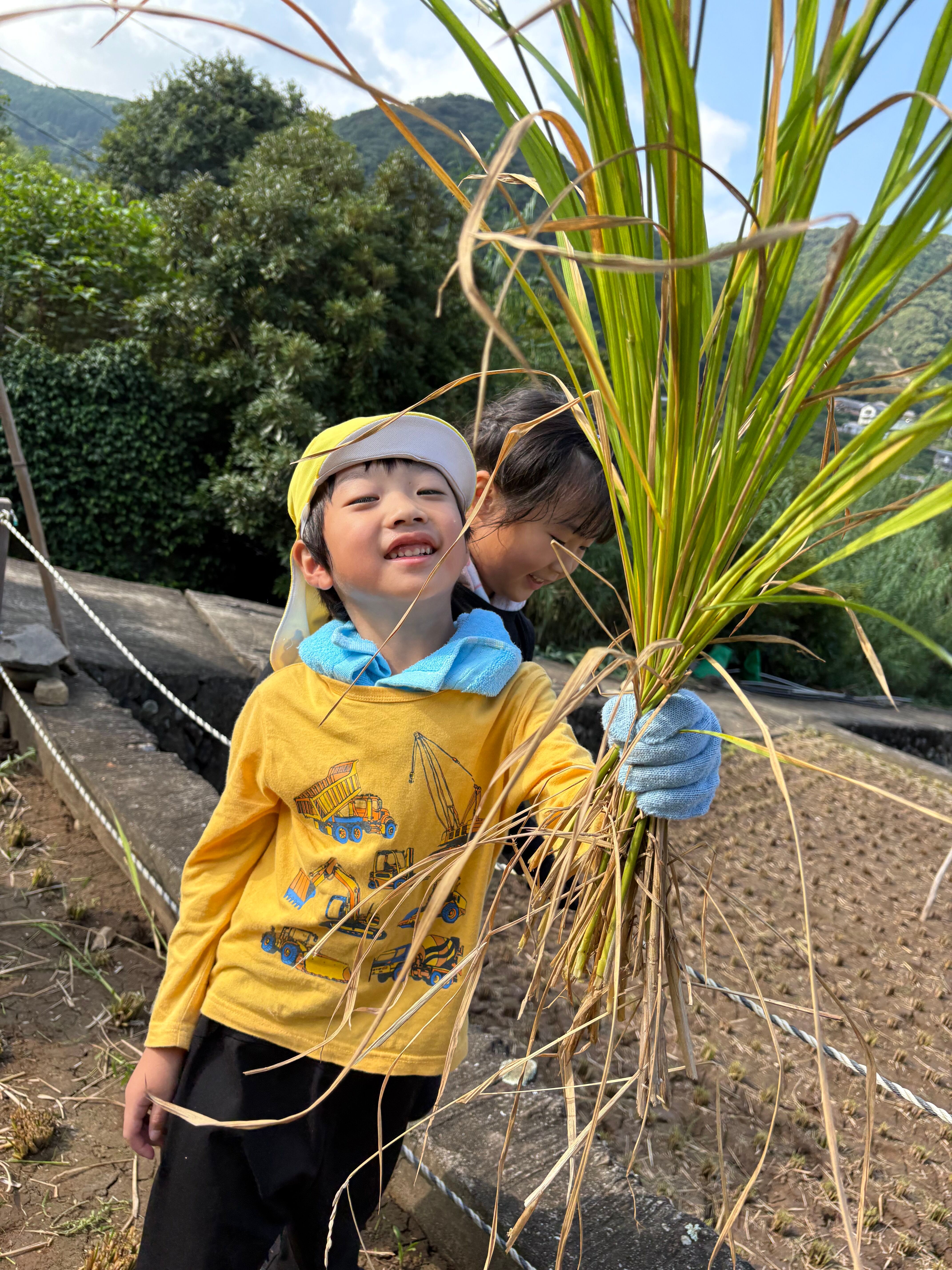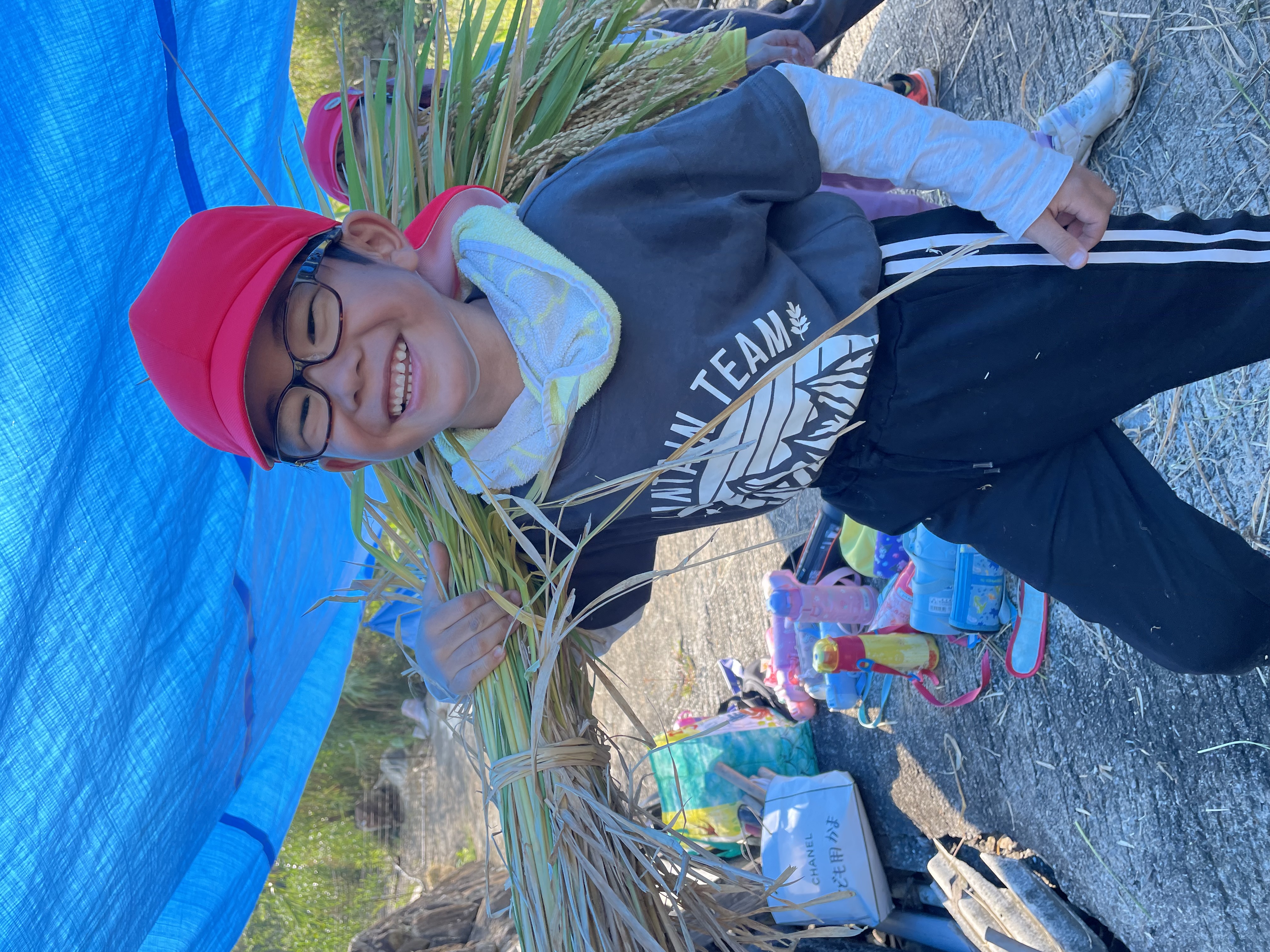 今年は残念ながら天候が悪く、田植えを行う事はできませんでしたが、今日はだいこん・きゃべつ組で稲刈りを行う事が出来ました(*^^)v地域の方々に手伝って頂きながら、鎌を使って稲を刈り、繰り返し行いながらどんどん上手になり、みんなで協力して刈り進めていく子ども達( *´艸`)お米づくりの大変さ・食べ物への興味や感謝する気持ちのきっかけになってくれると嬉しいなと思います。田んぼを貸して下さった小林さん、お手伝い頂いた地域の皆様、ありがとうございました!!