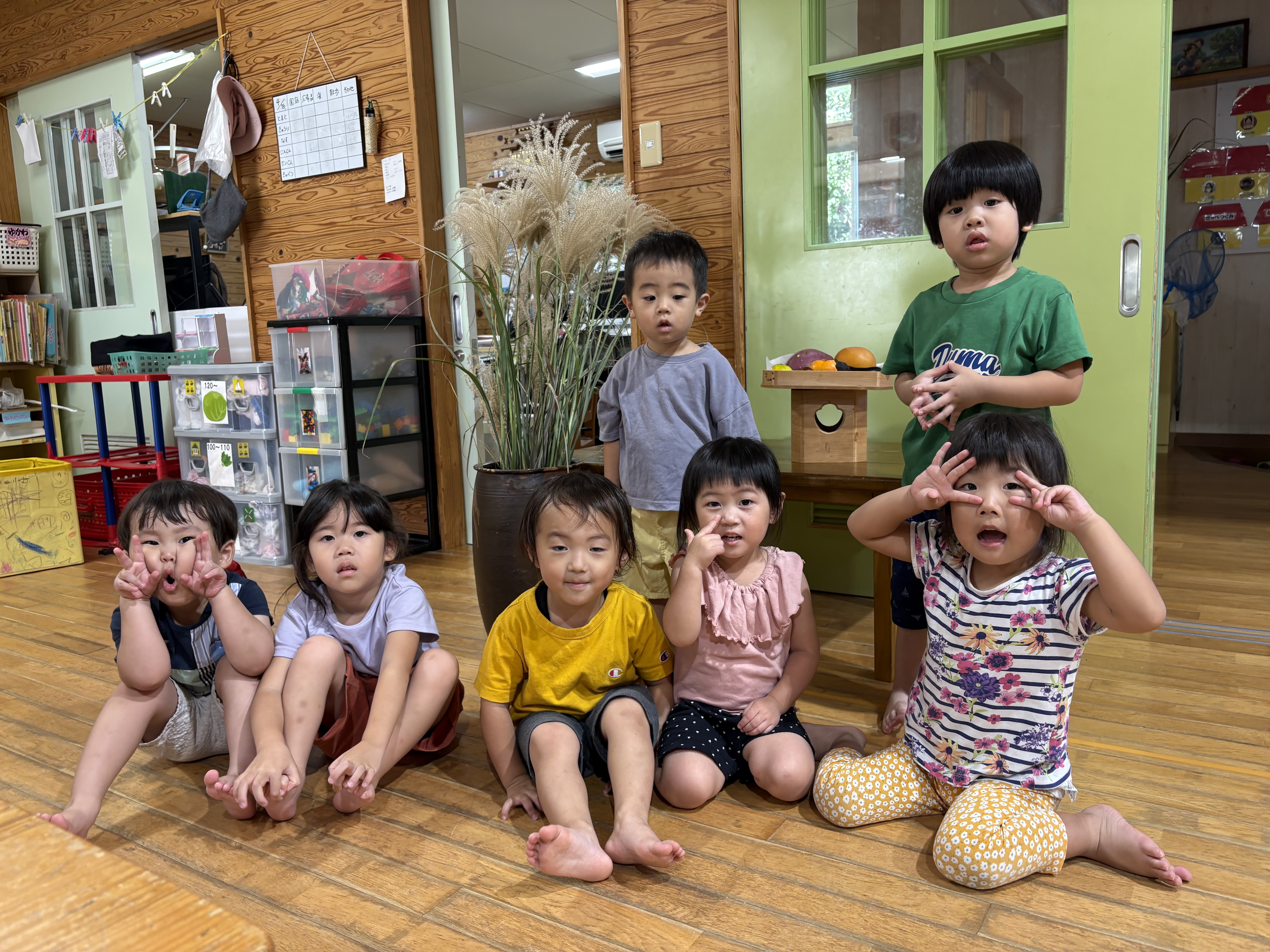 小さなクラスのお友達も、大きなクラスのお友達もみんな豆に集中…正座しながら真剣にさやを剥く姿が何とも可愛かったです(*^-^*)収穫した豆はお給食やおやつでいただきます!!