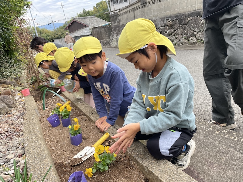 また、今年度二回目の堂崎地区の花植えに参加させていただきました!前回の花植え体験を覚えていた様子の子ども達、前回よりスムーズに植えることができていました(^^♪いつも貴重な経験をさせていただき地域の方々に感謝です(*^^*)ありがとうございます!