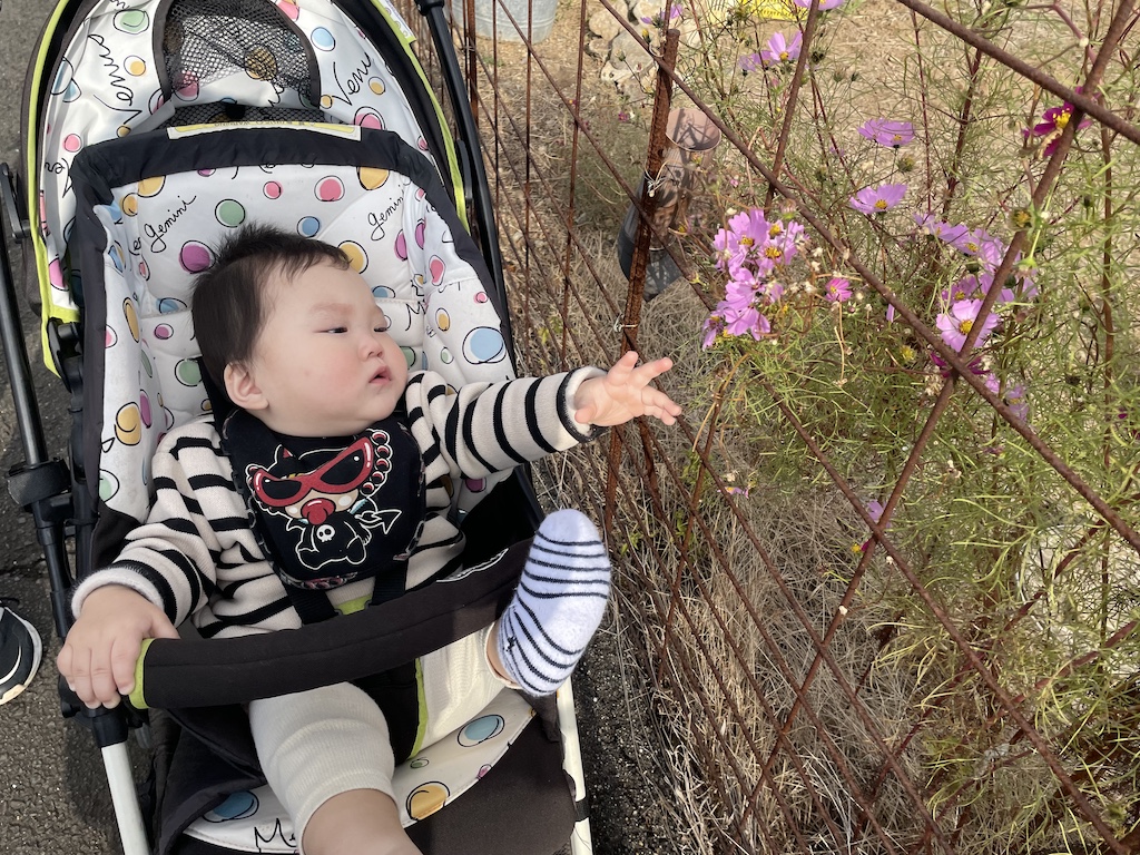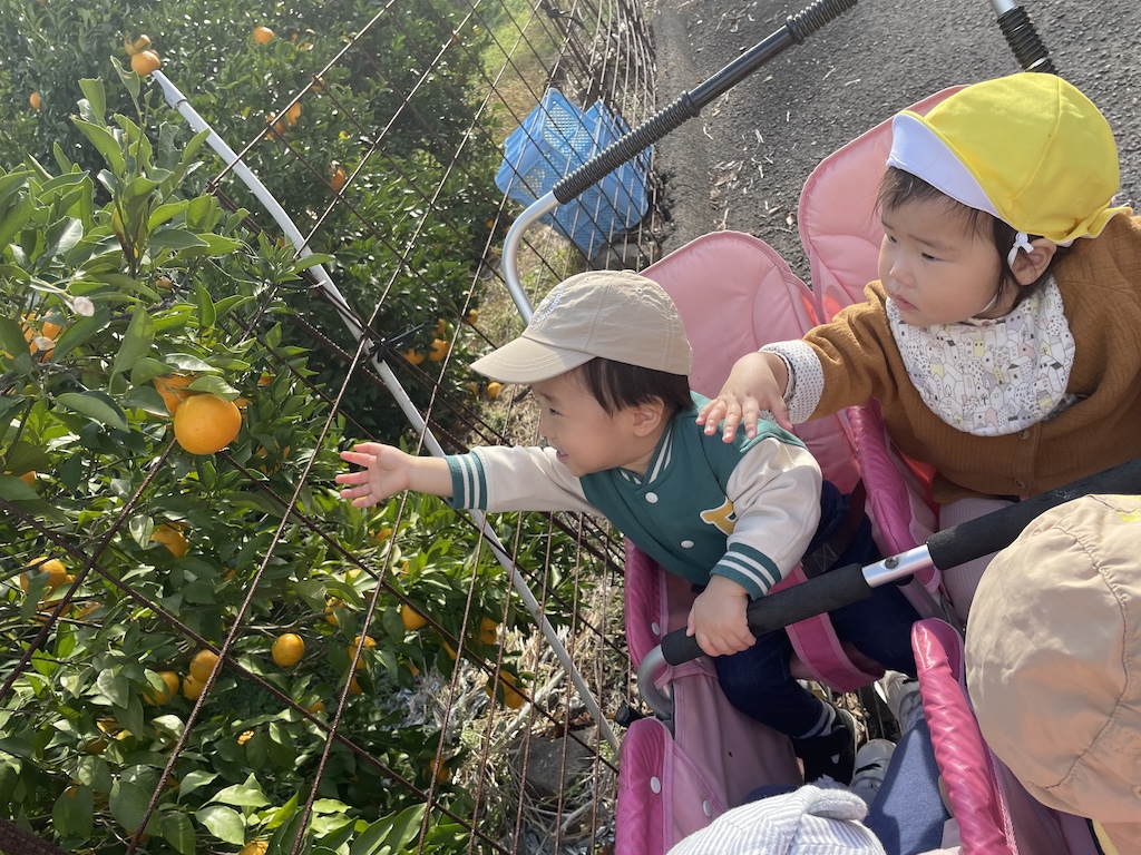 とまと組・きゅうり組さんは園周辺をおさんぽ(^^♪コスモスやみかん畑、キラキラ光る海秋がいっぱいのお散歩とっても楽しんでいました!