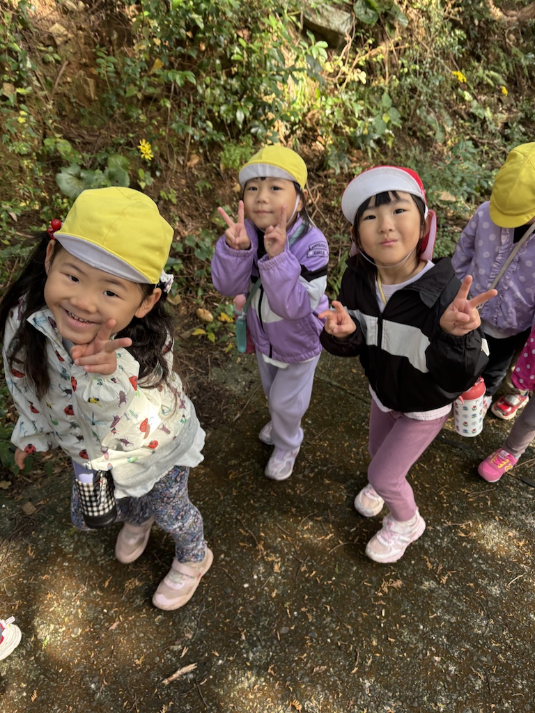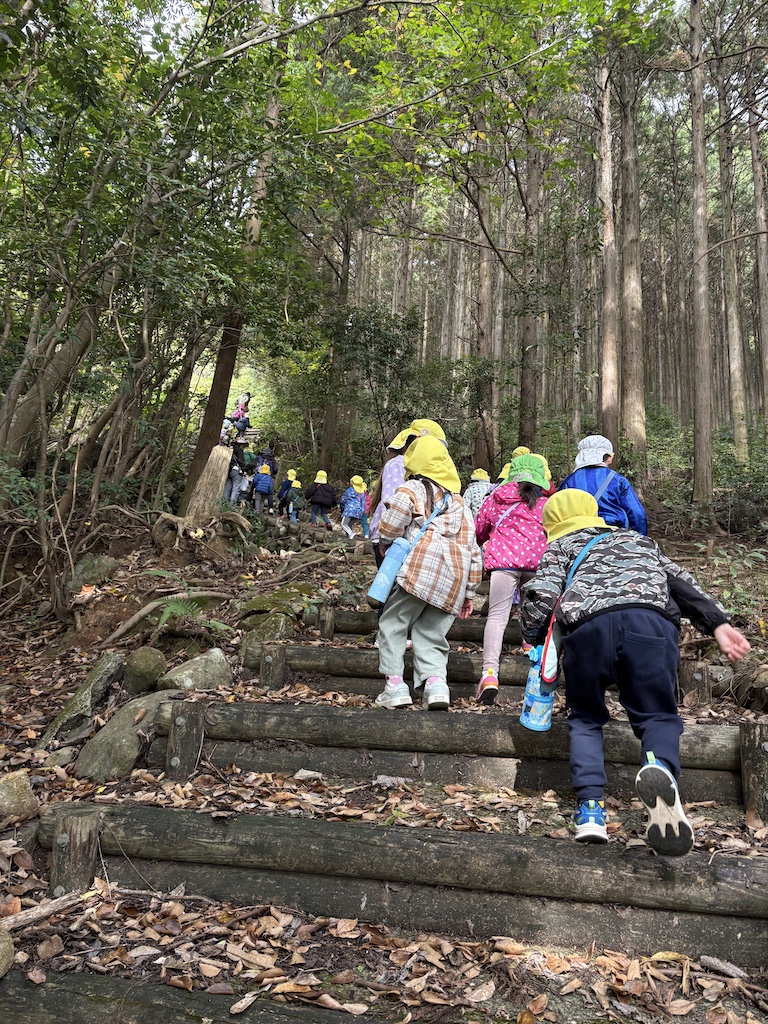 11月の園外活動(なす組・以上児)は、毎年琴の尾岳登山です(*^-^*)今年は前夜降った雨で登山道が滑りやすくなっており、危険だったので、全員バスで山頂へ向かいました(*^^*)以上児さんは山頂から様子を見ながら少し下って、別のルートで再度山頂へ( *´艸`)下sからの登山は叶いませんでしたが、子ども達は楽しんで歩いていました(*^-^*)
