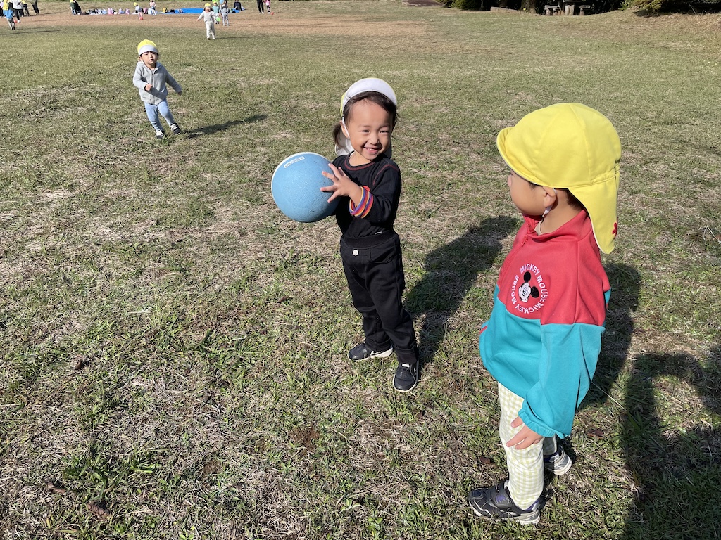 公園に到着すると、どの子も「じっとなんかしていられない!!」と駆け出して…遊具遊びにバスケット、展望台へのお散歩などなどのぞみ公園を大満喫の園外保育となりました( *´艸`)おにぎりの準備ありがとうございました!!広い原っぱの木の下で美味しく頂きました!