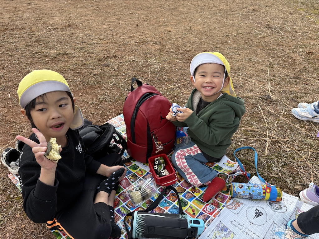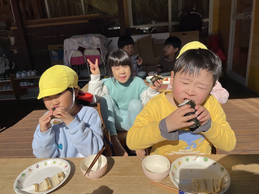 なす組さんは琴の尾岳の神様にお詣りしてから…山頂でたっぷり走り回りました!たくさん遊んだ後のおにぎりはとっても美味しいですよね!あっという間に完食の子ども達でした(^^♪