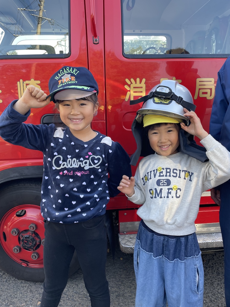 今日はだいこん組・きゃべつ組の園外保育の日です!中央消防署にお邪魔し、防災についてのDVDをみたり、煙体験、暴風体験、消火体験など盛りだくさんの防災体験でした( *´艸`)初めてだらけの体験に子ども達も終始興奮冷めやらぬ様子でしたよ(*^^*)昼食のおにぎりは、スタジアムシティーのサッカー観覧席で食べました~!!楽しすぎる園外保育…「かえりたくな~い!!」と言っていた子ども達でした( *´艸`)よかったよかった☆