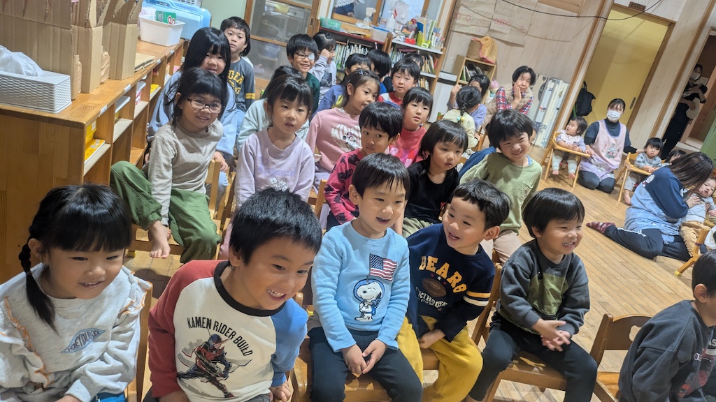 ちょっぴり心細そうなお誕生日のお友達。それでも担任の先生と一緒に前に出て、自己紹介や質問タイム頑張ってくれましたよ(#^.^#)お祝いする側のお友達も大きな声で歌を歌ってくれたり、誕生児のお話にしっかり耳を傾けてくれていました(^^♪とても温かい雰囲気で素敵な誕生会となりました( *´艸`)先生達からのプレゼントは『おおきないも』誕生児と大人気のブレインロッドが登場!!大きな芋役の先生は子ども達に見つからないように全力で待機しています!!11月生まれのお友達お誕生日おめでとう!!またひとつ大きくなったね(*^-^*)新しい1年も元気に、笑顔いっぱいで過ごせますように!!