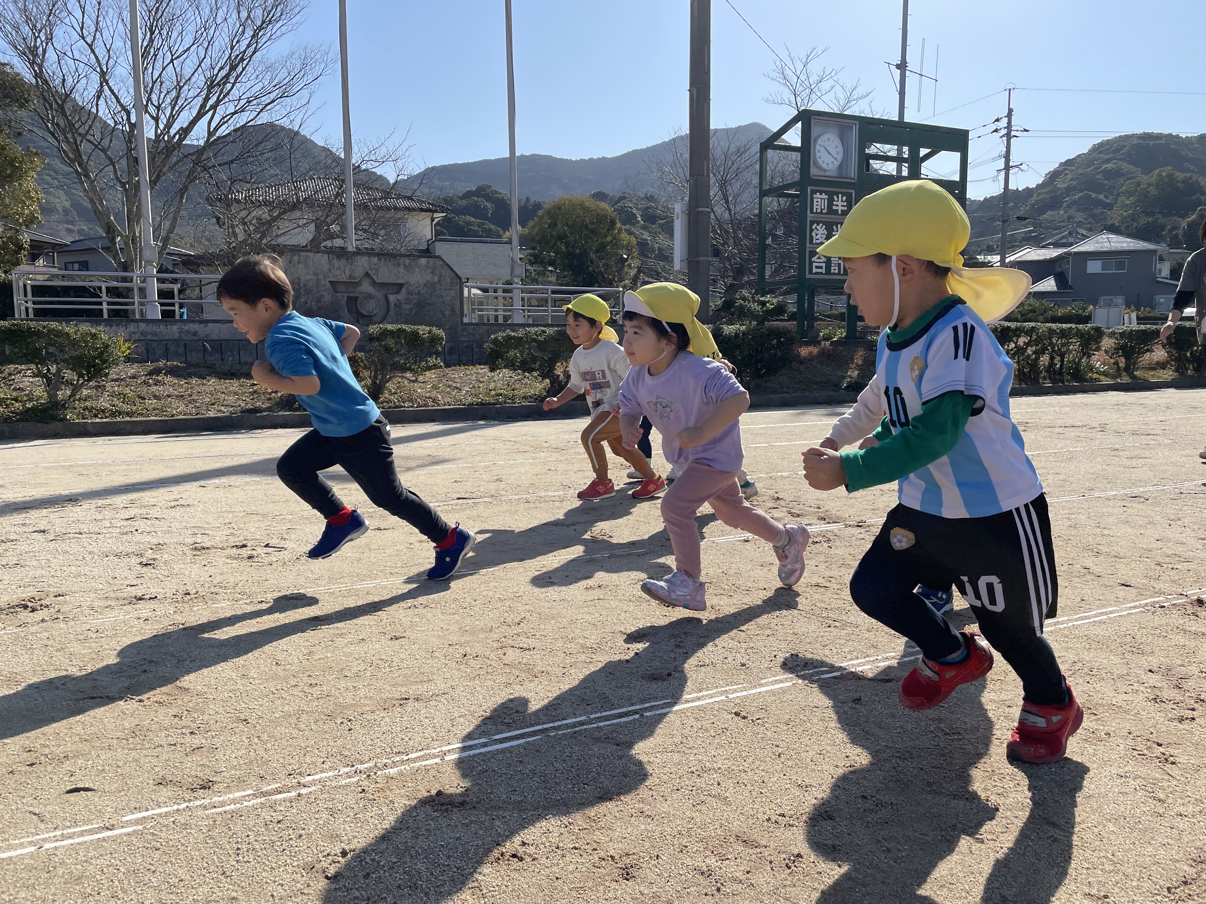 今日から新年の保育が始まります。登園した子ども達はお正月休みの出来事を楽しそうに話しています( *´艸`)堂崎の神様へ新年のごあいさつの後は園庭を元気いっぱい走り回る子ども達!お休み中静かだった保育園に賑やかな子どもの声が帰ってきました( *´艸`)今年も、子ども達が元気にのびのび笑顔いっぱいで過ごせますように…