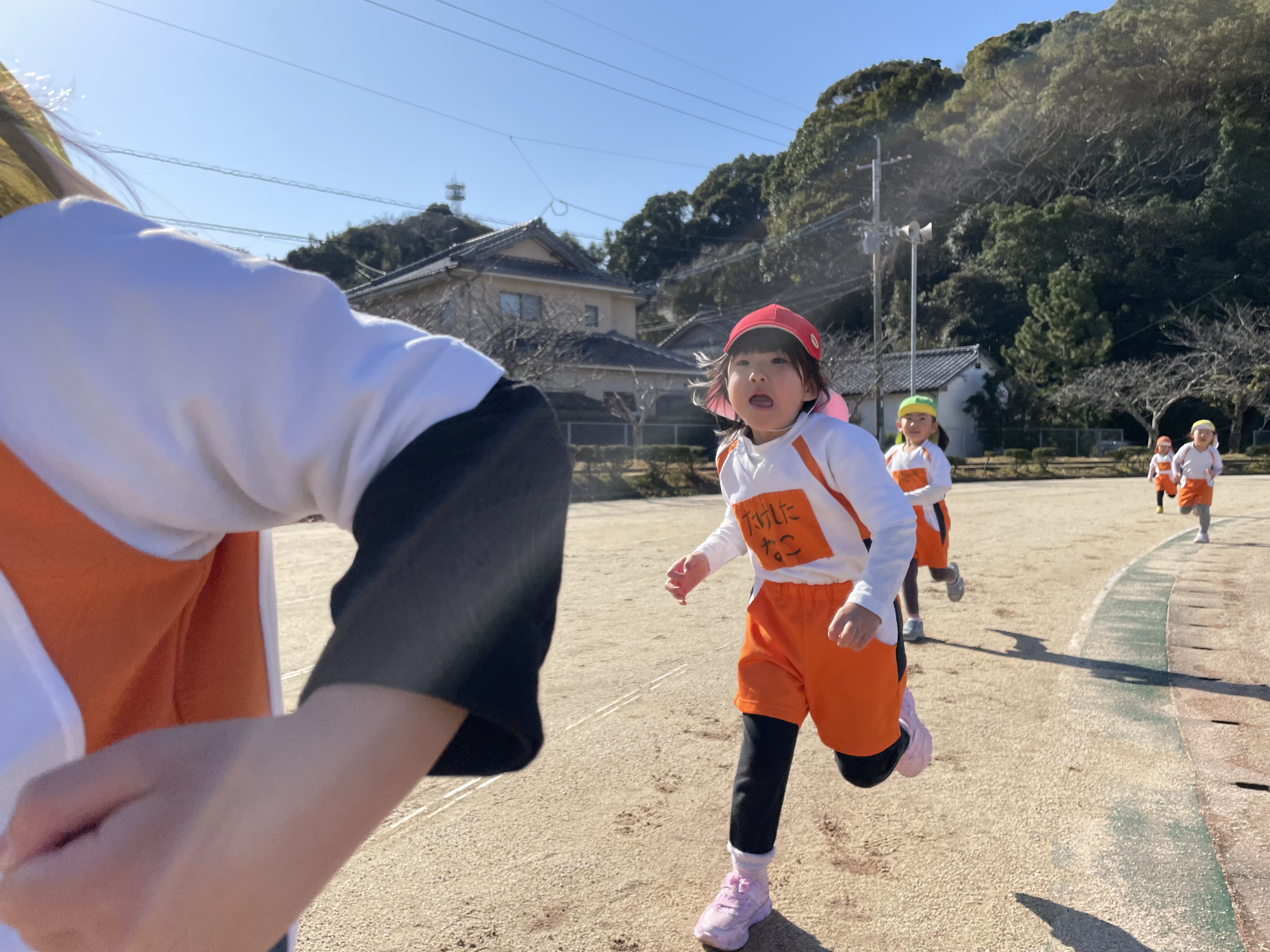 今日はみんなが楽しみにしていたマラソン大会!!お天気にも恵まれて、無事に開催することができました。それぞれ力いっぱい走り、最後まで完走することができました(*’▽’)走行距離は、なす組200m、にんじん組400m、だいこん組600m、きゃべつ組800mみんな頬っぺを真っ赤にしながら走り、ゴールする時の嬉しそうで達成感に満ちた表情が素敵でしたね(*^-^*)頑張った後は、公園へ…疲れて遊べない?!そんなことはありません!!こちらも全力で楽しんでくれていましたよ( *´艸`)忙しい中、応援に来てくださった保護者の皆様、ありがとうございました(^^♪