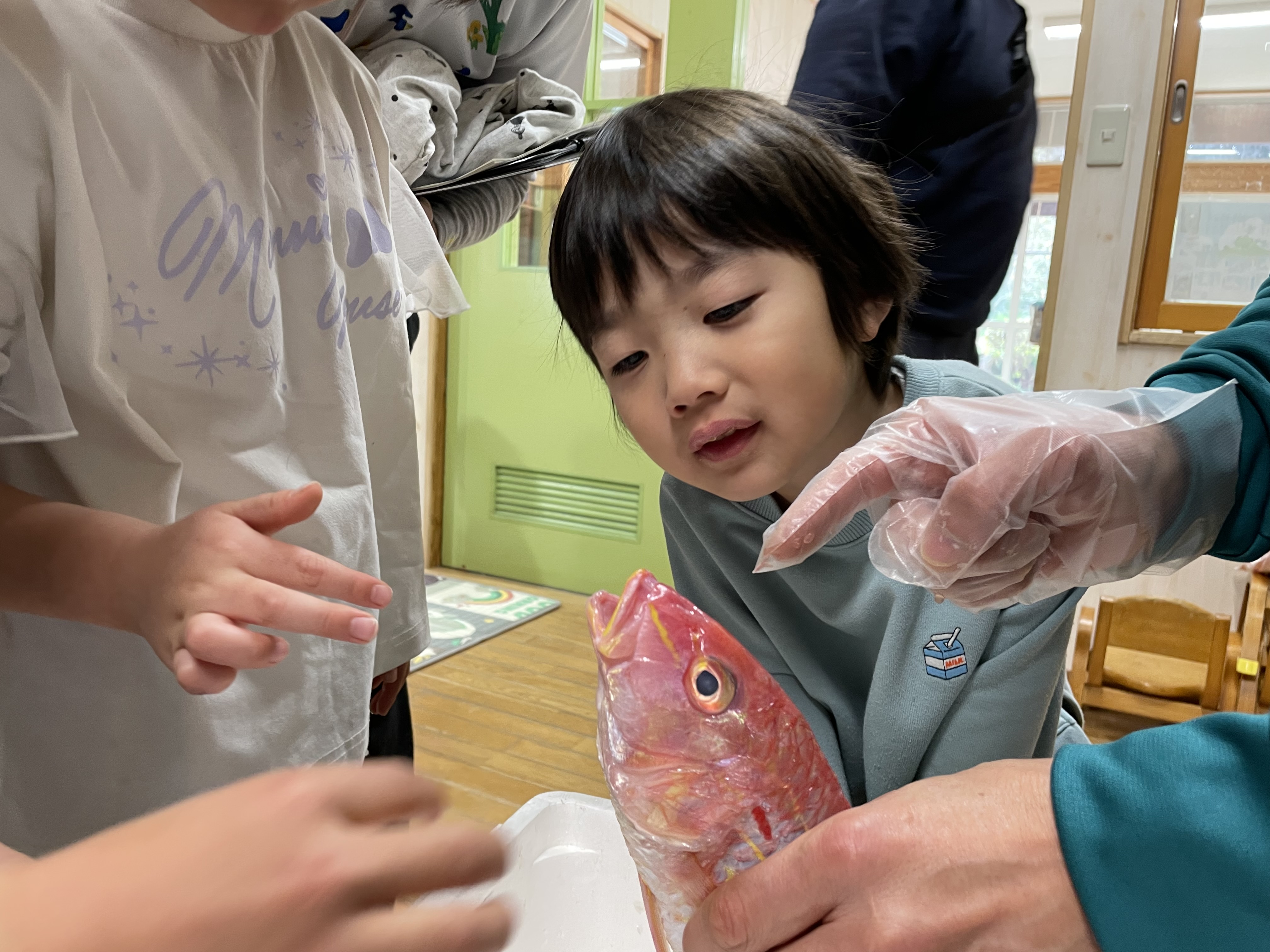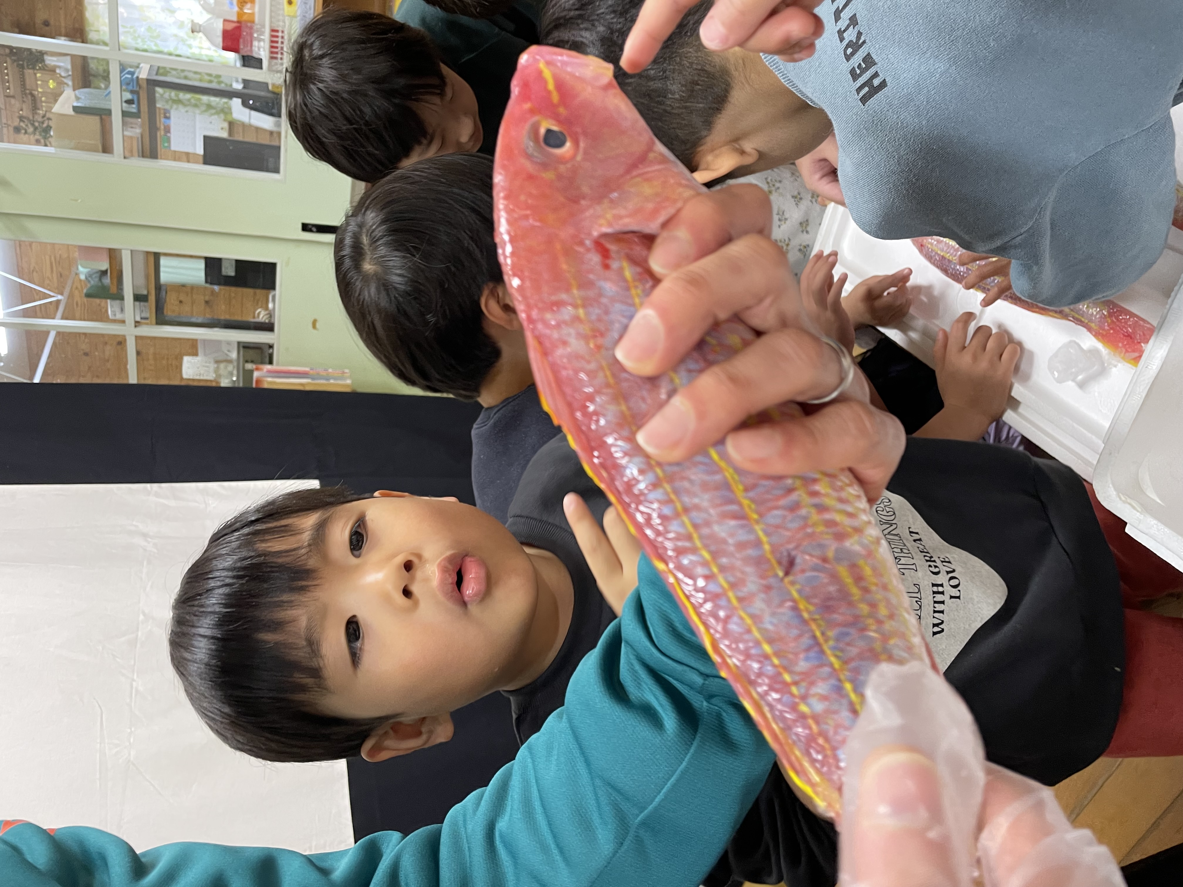 きゃべつ組、2回目の魚食活動の日!本日は、長崎大学の環シナセンターという所へ行ってきました!お魚をみたり、触ったり、兼子漁具さんから漁具のお話を聞かせていただきました( *´艸`)海洋プラスチックを使ったキーホルダー作りもさせていただき、世界に一つの素敵な宝物に大満足の子ども達でした!保育園への帰りには井上蒲鉾さんにお邪魔し、好きな蒲鉾とすり身ドーナツをおやつに購入(*^-^*)お魚だらけの一日☆とっても楽しんでくれた様子でした(^^♪