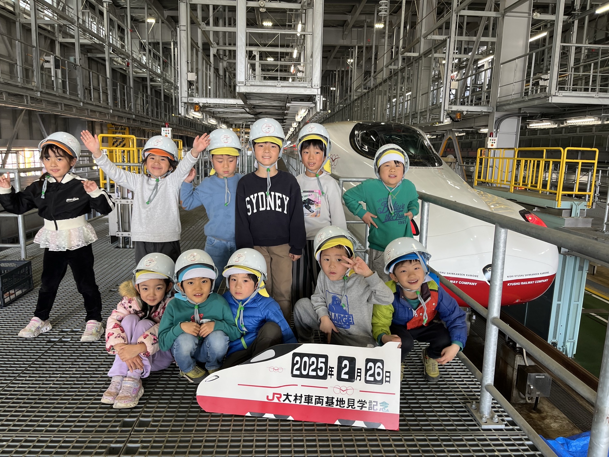 今日はきゃべつ組さんが楽しみにしていた新幹線見学の日です(*^-^*)西九州新幹線「大村車両基地」を見学させて頂きました!すぐ目の前で新幹線を見たり、車両に実際に触れたり、新幹線の内部も案内して頂いて、子ども達も終始大興奮( *´艸`)新幹線についての知識をクイズ形式でとっても楽しく分かりやすく説明して頂き、とても有意義な時間を過ごすことができました!