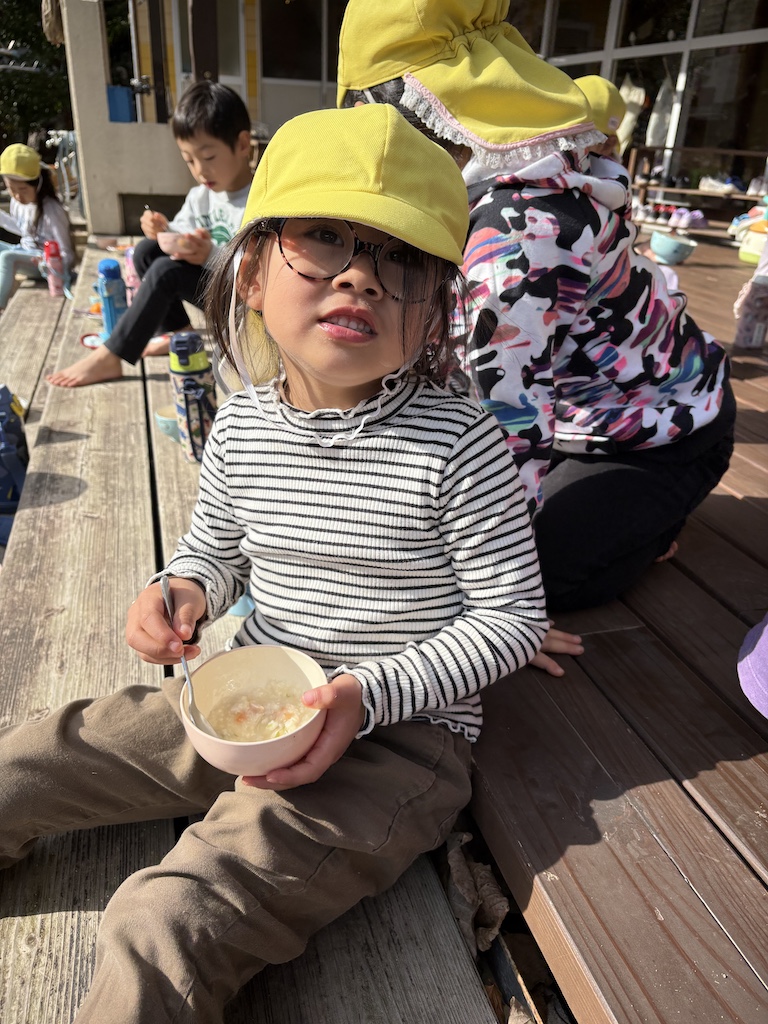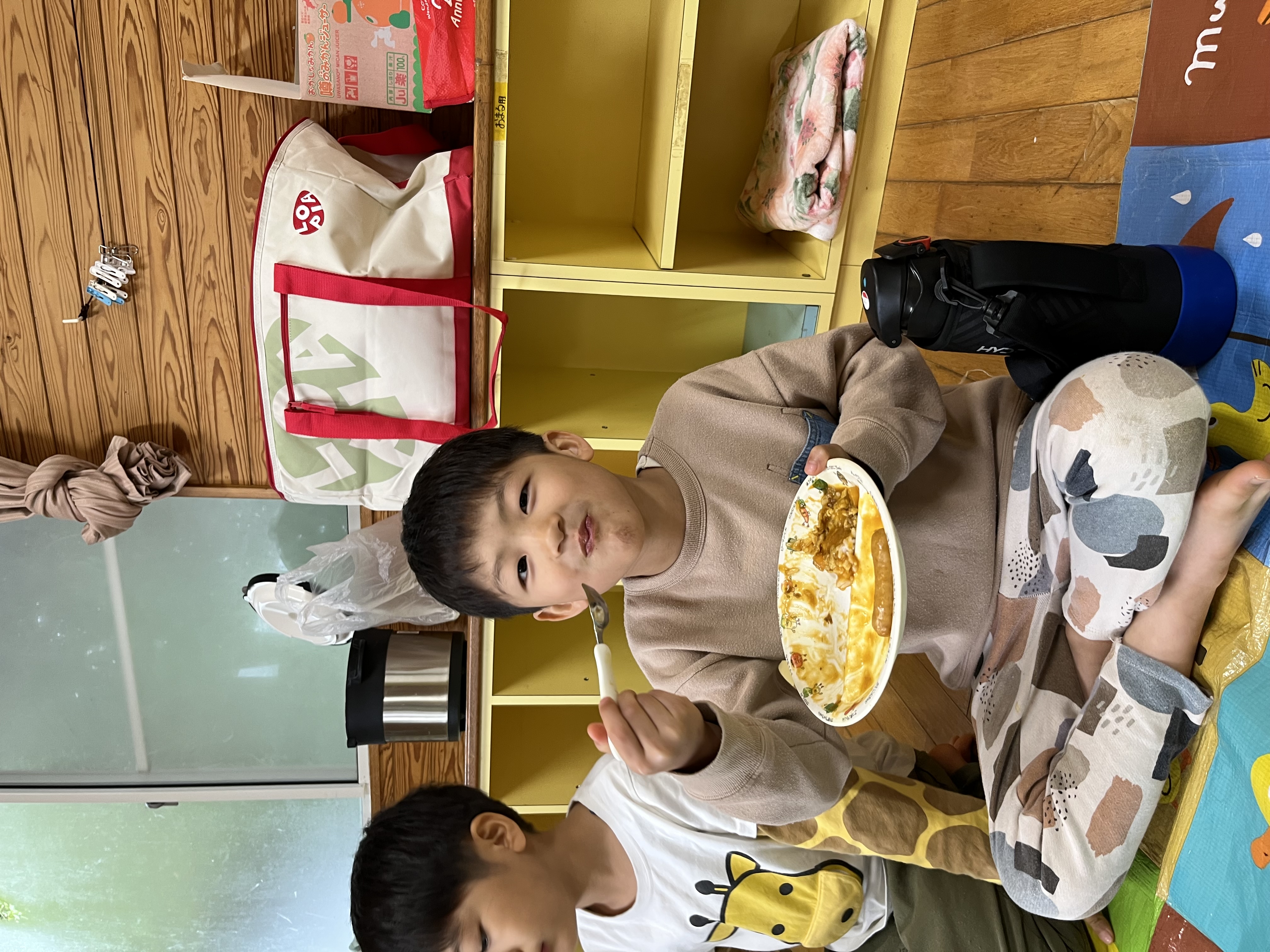 自分達で作ったカレーの味は格別だったようで…( *´艸`)一口食べると笑顔がこぼれていました。その後はバスに乗ってクリーンパークの足湯へ…そして公園へ…盛りだくさん笑顔沢山の一日でした(*^-^*)また一つ!思い出が増えたね( *´艸`)