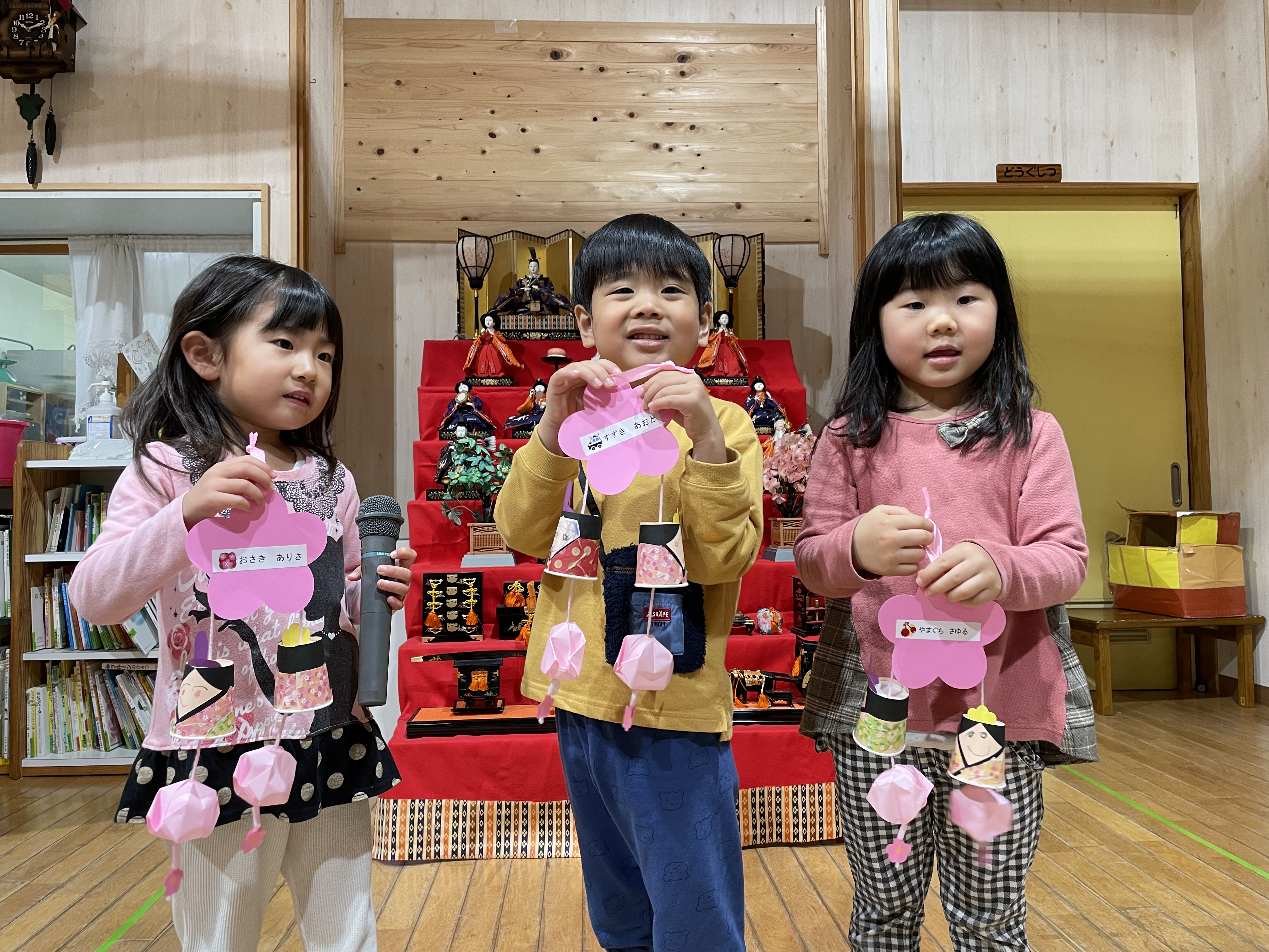 今月誕生日の保育士も一緒にお祝いしました( *´艸`)たくさんのお友達を前に緊張した様子でしたが…誕生者への質問コーナーではマイクをしっかりと握って、堂々と質問に答えていました(*^-^*)みんなが楽しみにしている先生からのプレゼントは、ペープサート!!春のかくれんぼのお話や進級、卒園のお話でみんな楽しく見ることができていました!3月のお誕生日のお友達お誕生日おめでとう(^^♪これからも元気にのびのびすくすく大きくなってね(*^-^*)
