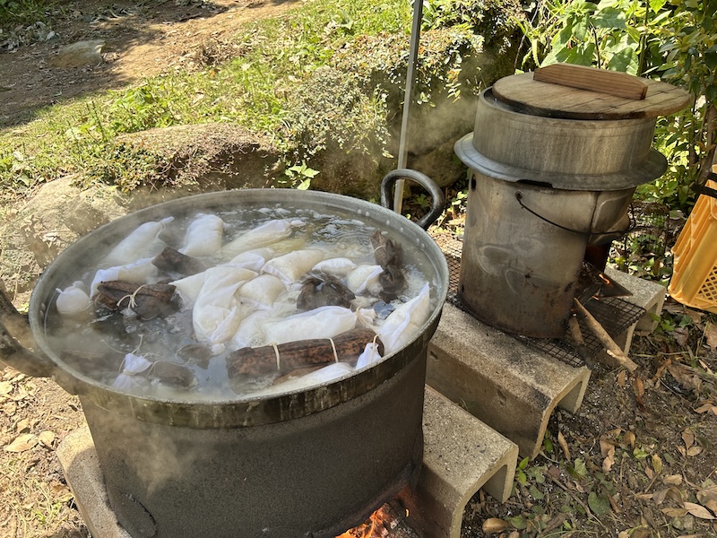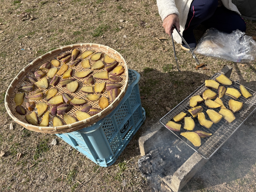 鬼火のやぐらが崩れ、残り火になると…みんなのお楽しみ!園で作った干し芋を焼いて食べました( *´艸`)ホカホカの干し芋で心も体も温まったようです☆