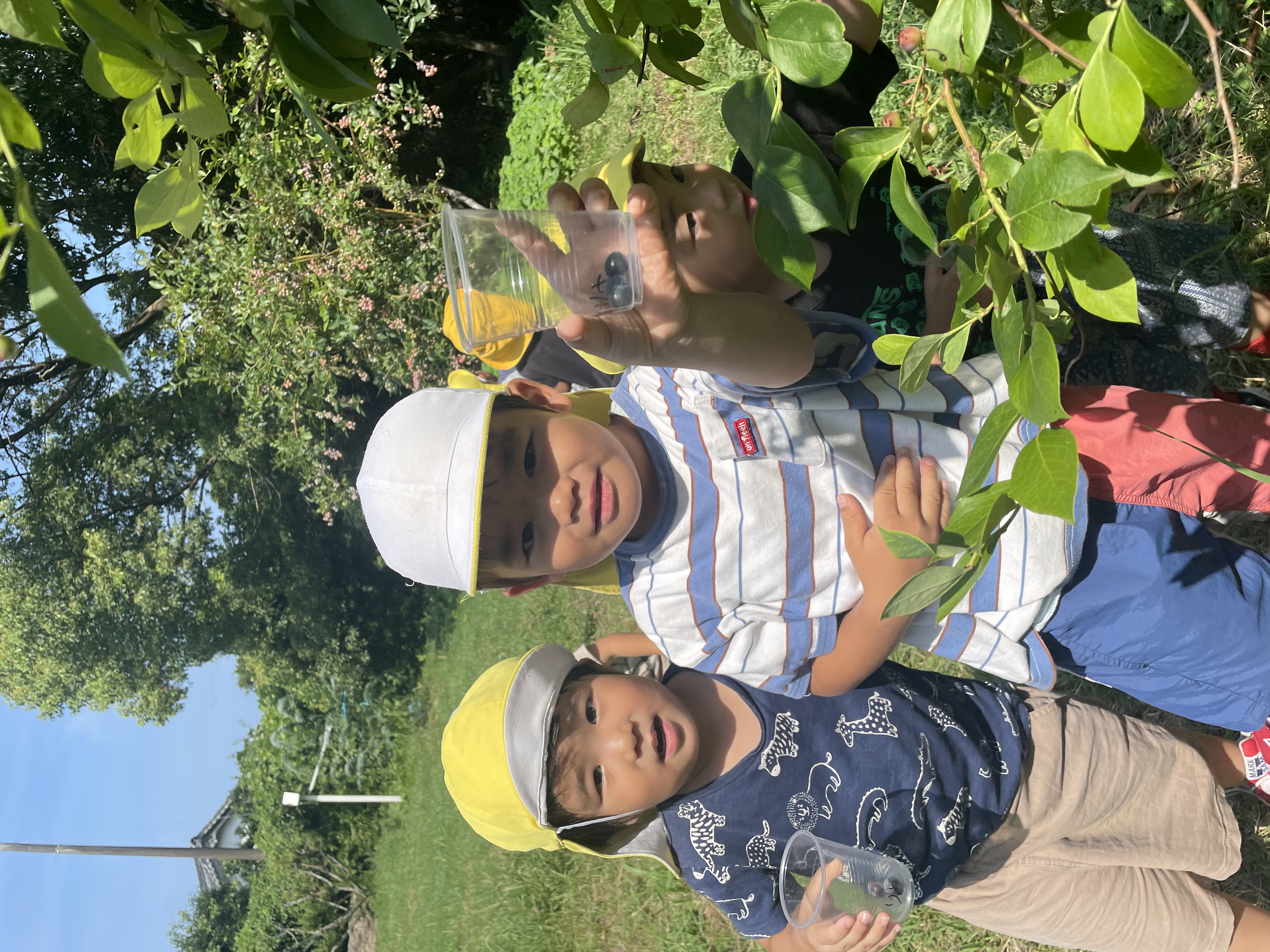 ひかり保育園の広場の奥にブルーベリーの木があります。今年は6月ごろからかわいい実をつけ始めました(^^)/まだ黄緑色の小さな実を見つけて「食べられる?」と収穫を楽しみにしていた子ども達( *´艸`)以前にも収穫を体験した大きいクラスのお友達は濃い紫になって、さらに白っぽくなった頃が美味しい!と知っています(*^-^*)子ども達同士で「まだ美味しくないよ」「もう少しじゃ??」など観察していました。そして!!ついにたくさんのブルーベリーが収穫の日を迎え、みんな大喜びで収穫です!!今年は過去最高数の実をつけてくれたようです!紙コップにそれぞれ収穫して、自分で収穫したものをお土産に持ち帰りました(*^-^*)まだまだ収穫は続きそうです!!