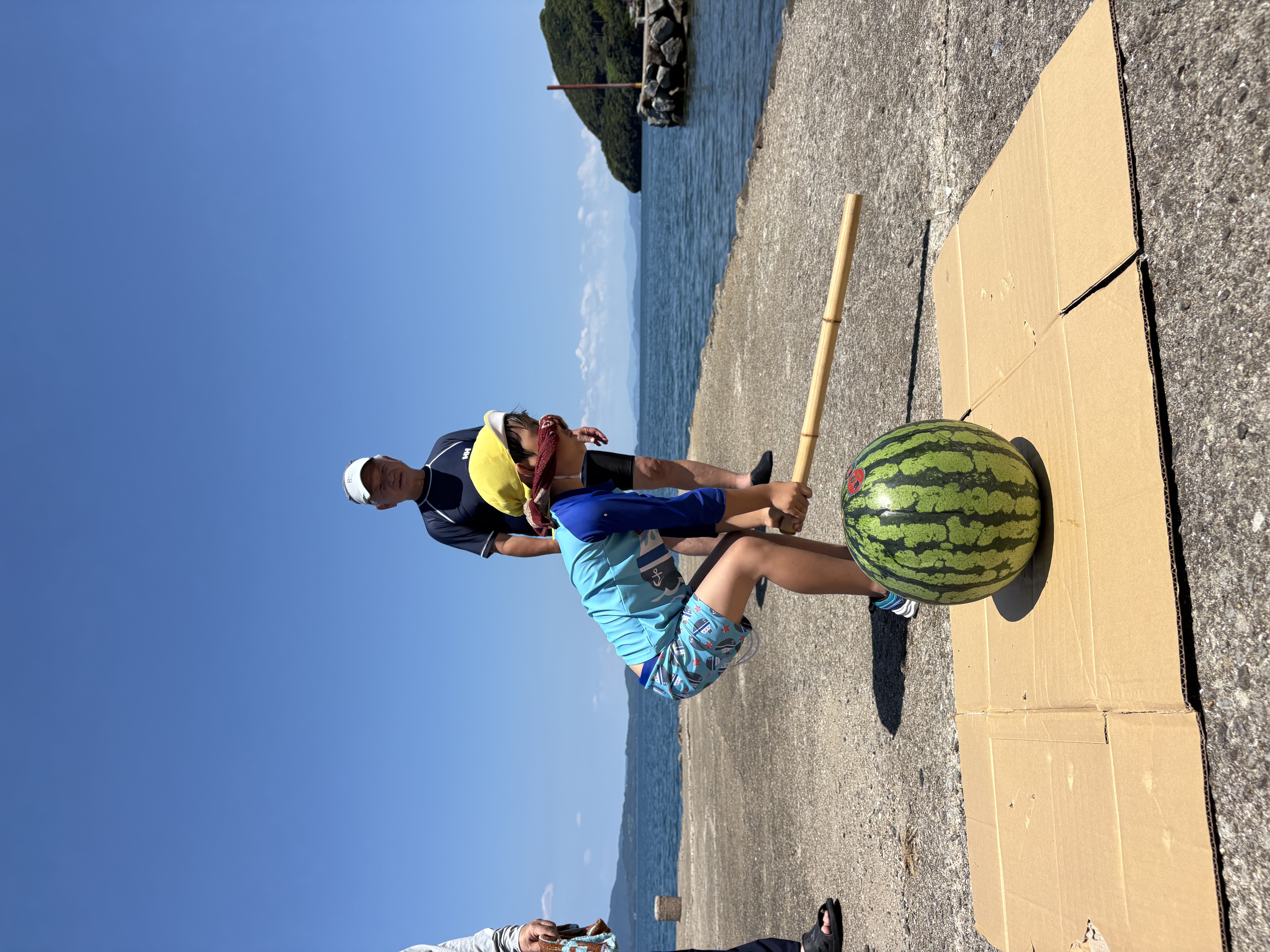 海から上がったその後は、スイカ割タイム!!「自分が割るぞ!」と気合十分で(目隠しの隙間からちょっと覗いてみたり…(笑))大盛り上がりでしたよ(*^-^*)