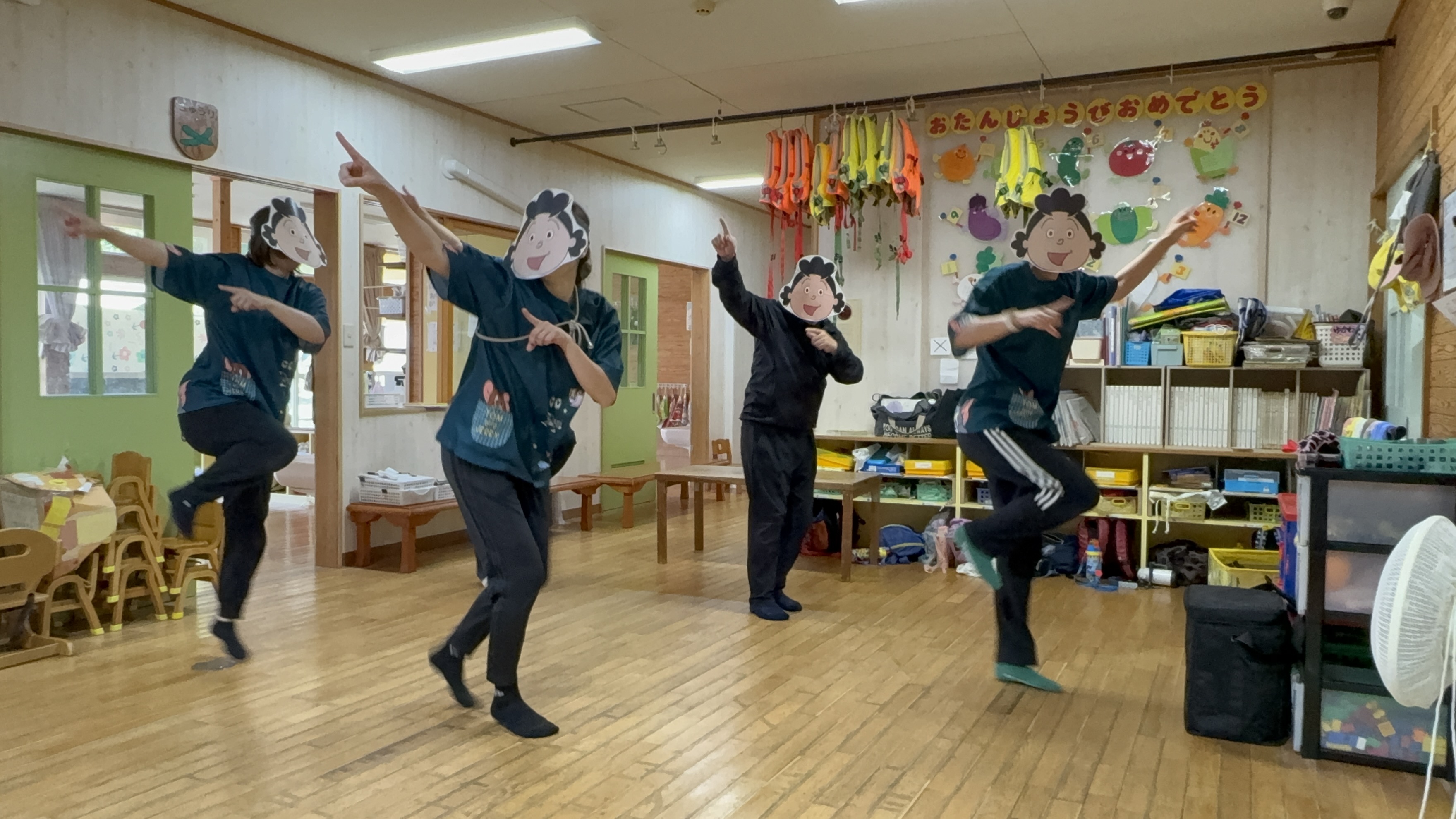 今月誕生日を迎えたお友達は5名!先月誕生会を欠席だったお友達を含めて、6名でお祝いしました(*^-^*)ちょっぴり恥ずかしがりながらも、お友達からの質問に笑顔で答える9月生まれのお友達☆和やかな雰囲気で誕生日をお祝いすることができました(^^)先生たちからの出し物は…妖怪のお話でした( *´艸`)その後、みんなで『ようかいしりとりダンス』を踊りました♪妖怪尽くしの誕生会!みんなとても楽しんでいましたよ!