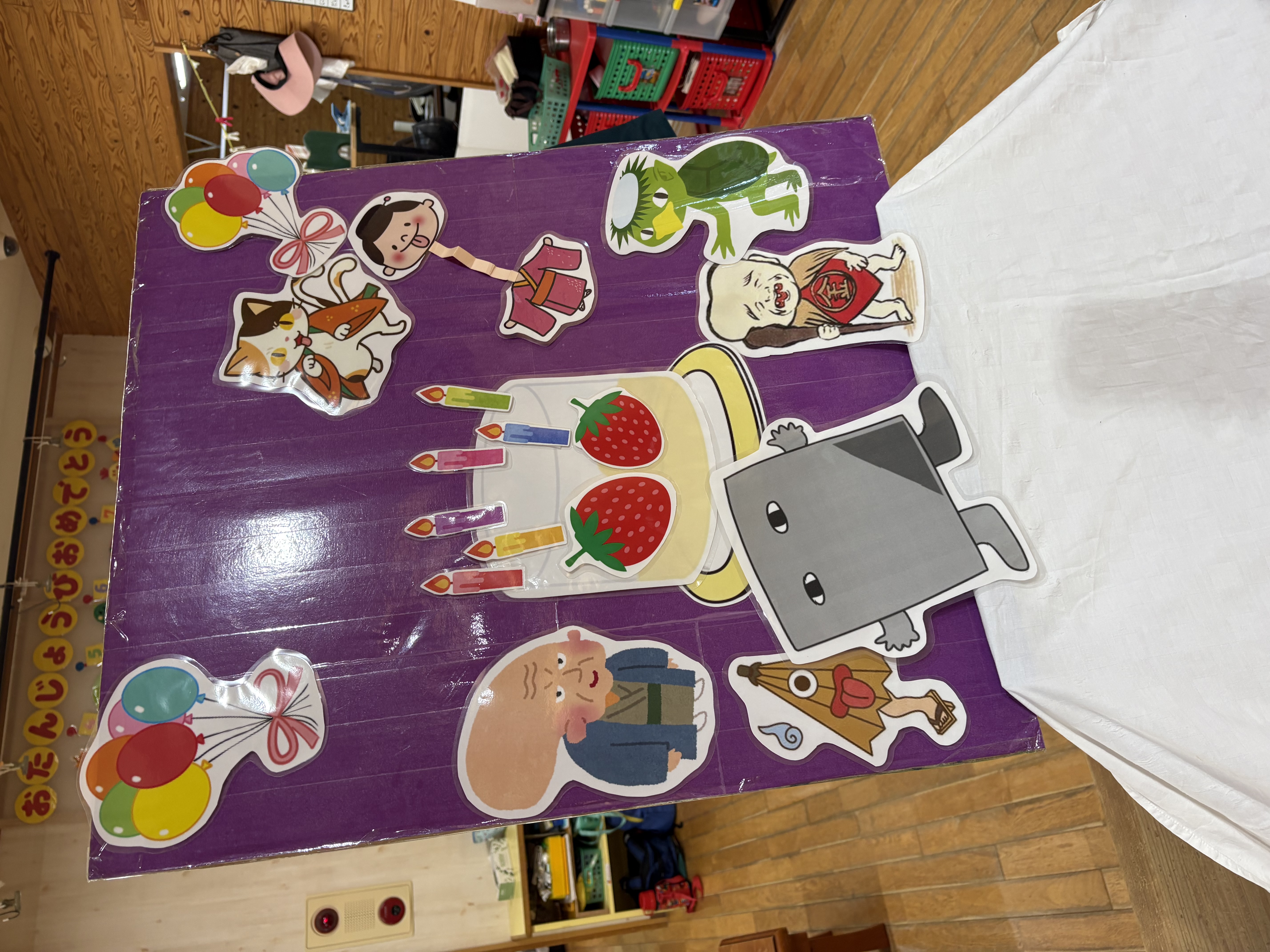 今月は6名のお友達がお誕生日を迎えました(*^-^*)小さなクラスのお友達も元気に入場(^^♪歌のプレゼントやカードのプレゼントをもらってニコニコのみんな☆みんなのお楽しみ…先生達からの出し物は…12支のお話の劇でした(*^-^*)とまと組さんからきゃべつ組さんまでみんな大笑い!!先生達の全力の劇を楽しんでくれたようでした!!