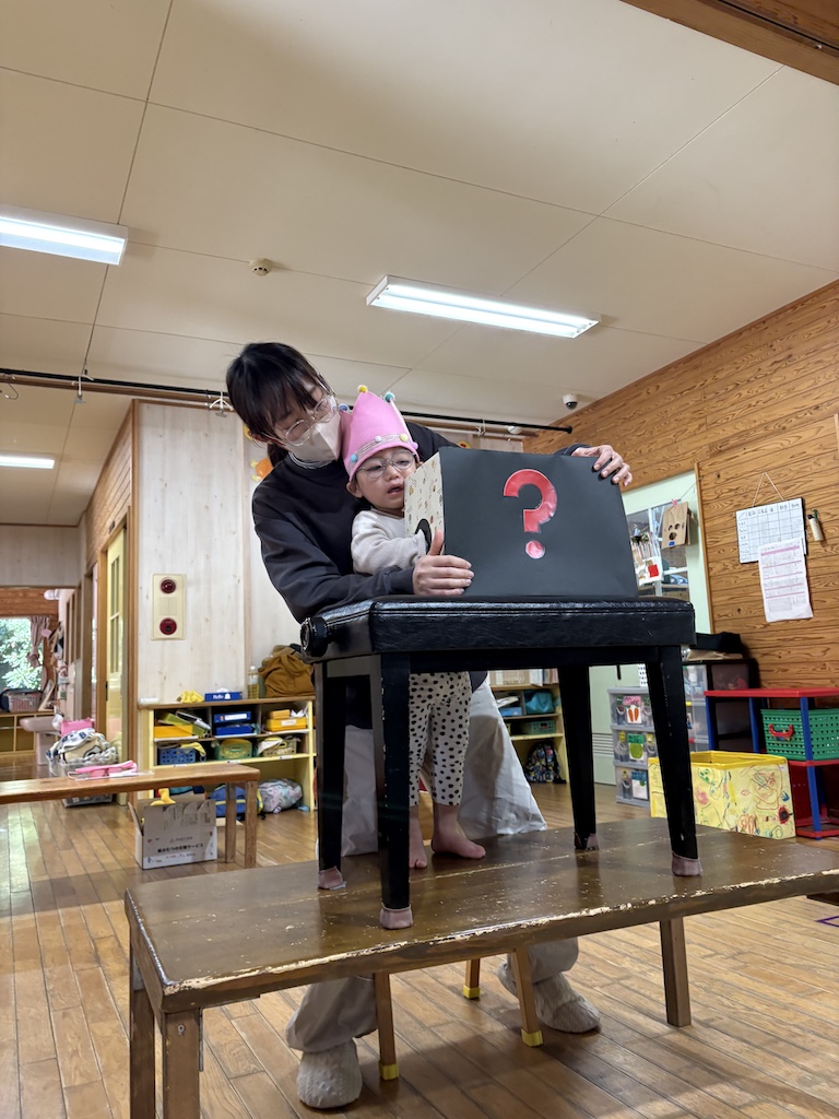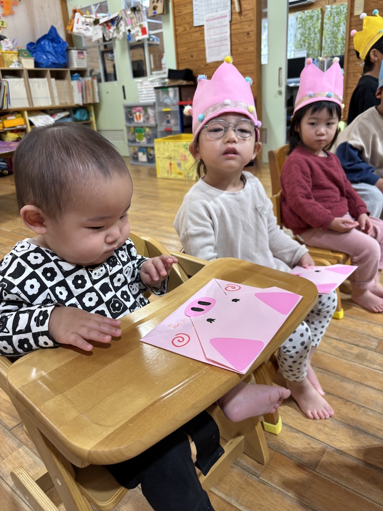今月は8名のお友達が誕生日を迎えました(*^-^*)残念ながら本日1名のお友達がお休みでしたが、みんなで賑やかな誕生会となりました。小さなお友達の自己紹介は兄弟やお友達が手伝ってくれました(*^-^*)誕生日カードのプレゼントの後は、箱の中はなんだろな?クイズ、福笑いなど大盛り上がりでした!!福笑いで完成したお福さんの顔を見て、笑いが止まらなくなるお友達も…( *´艸`)お誕生日会が終わった後もしばらく福笑いが大人気でした(*^-^*)1月生まれのお友達お誕生日おめでとう(^^)また1つ大きくなったね!新しい1年も元気に、笑顔いっぱいで過ごせますように!!