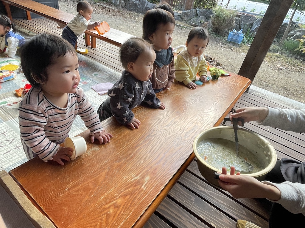 明けましておめでとうございます。年が明け、ひかり保育園にも子ども達の元気な声が響いています(*^-^*)長いお正月休み、怪我無く、元気に過ごして笑顔で登園してくれたことが(^^♪何よりも嬉しいです!新しい年を迎え、保育園での最初のイベントは『七草粥の日』です!お正月のご馳走で疲れた胃腸を休めると共に、今年1年間の無病息災を祈りながら食べる七草粥。ひかり保育園では園庭で大鍋を使用し、薪でたくさんのお粥を調理します(*’ω’*)大鍋で作る七草粥はとっても美味しく優しい味。体もポカポカ温まります。子ども達もたくさんおかわりして食べていましたよ( *´艸`)