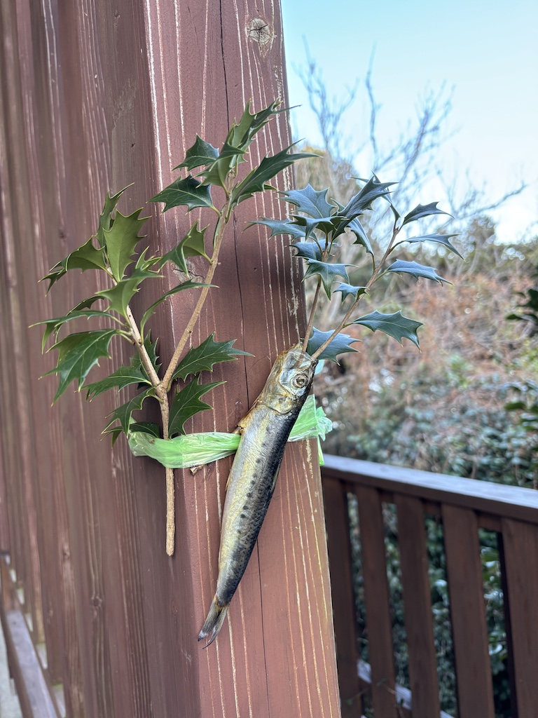 保育園の玄関に柊イワシが飾られ、いつもと違う雰囲気の保育園( *´艸`)