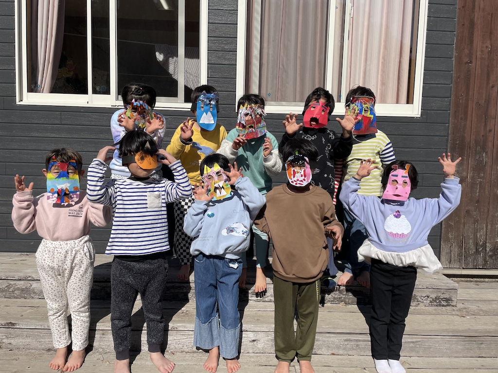 暦の上では2月3日が立春です!昨日2月2日が節分でした(*^-^*)今年の恵方は西南西☆ご家庭でも豆まきや恵方巻を食べましたか??ひかり保育園でも、皆で豆まきをしました☆節分についてのパネルシアターを見た後は、個性豊かな可愛いお面を被って、張り切って鬼退治!!赤鬼、青鬼どちらも大慌てで逃げ出しましたよ(^_-)-☆今年も1年みんな元気に過ごせますように( *´艸`)