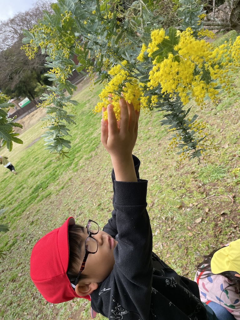 きゃべつ組さんが植樹したミモザの木が小さく黄色い花を咲かせ、風に揺れています(*^-^*)広場に出るとミモザのいい香り…「今年の卒園式はミモザの花が飾れるね!」玄関からすぐのホールの入り口で、ミモザの花が子ども達の晴れの日をお祝いしてくれています( *´艸`)今日はきゃべつ組さんの卒園式です。壁にはきゃべつ組さん一人ひとりの入園当初の写真と現在の写真が飾られています。登園した子ども達、お家の方々も写真を見るなり笑顔になります( *´艸`)入園から卒園まで様々なことを体験し、経験し優しく逞しく成長してくれたきゃべつ組さん。みんなの「おめでとう」の気持ちが溢れるとても素敵な卒園式でした。特に、お家の方から子ども達へのお手紙では、みんなウルウル…お家の方の愛情あふれる言葉に温かい気持ちになります(*’ω’*)子ども達の目にも涙が光っていました。