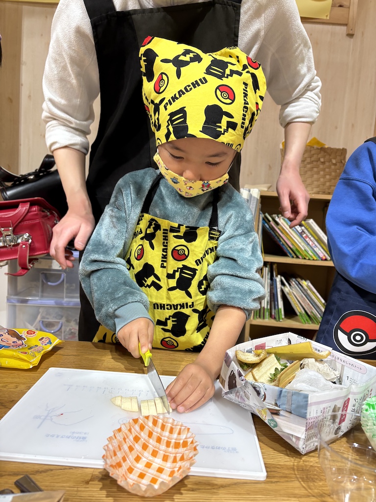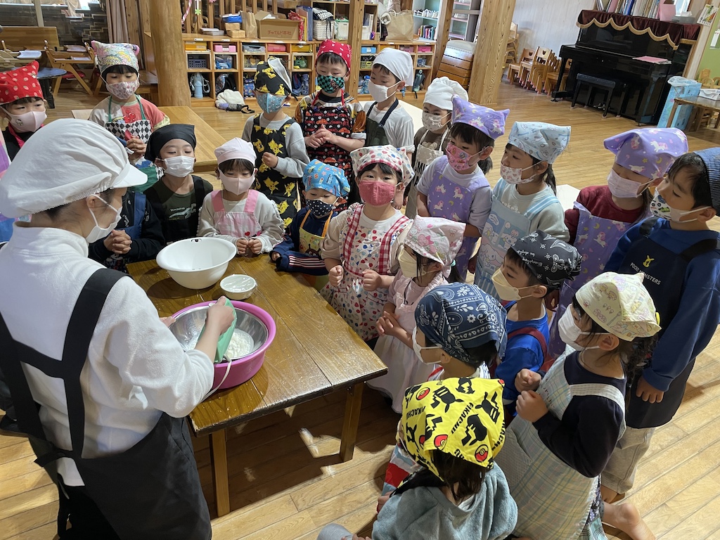 楽しい思い出いっぱいで小学校へ羽ばたいてほしい!と今日はだいこん組さんと一緒にきゃべつ組最後のクッキングを楽しみました(*’ω’*)クッキングのメニューは…生クリームや果物を使ってフルーツサンドとおにぎり🍙です!!包丁にも挑戦しましたが、みんな話をよく聞いて慎重に取り組み、楽しく参加することができました(*^-^*)「包丁で切るの楽しかった~!!」と嬉しそうな子ども達でした(^^♪ホイップたっぷりのフルーツサンドを大きな口でほおばって「美味しかった~☆」とあっという間に完食。おかわりして食べていました( *´艸`)きゃべつさん!楽しい思い出がまたひとつ増えたね☆