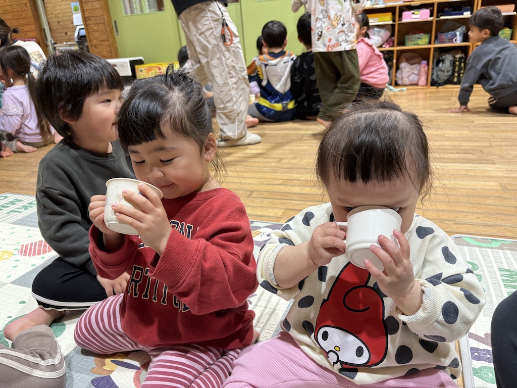 最後にはみんなが楽しみにしていた美味しい時間(*^-^*)雛飾りを見ながらひなあられと白酒代わりのカルピスをいただきました!!これからも、みんな元気にすくすく大きくなりますように(^^♪